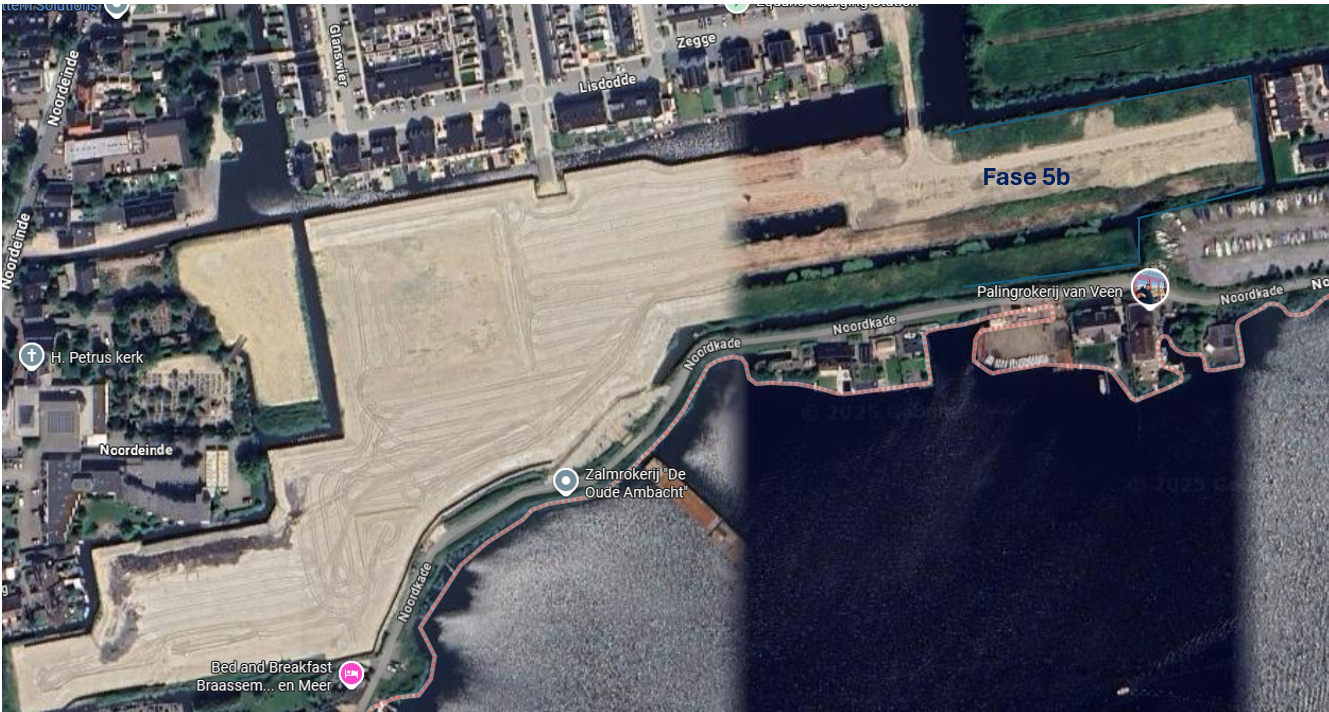 Aannemer JDB zal starten met het transporteren van een gedeelte van het vrijkomende zand van de voorbelasting fase 4 naar fase 5b (zie kaart hieronder voor locatie van fase 5b). Zodat het vrijkomende zand uit fase 4 hergebruikt kan worden.