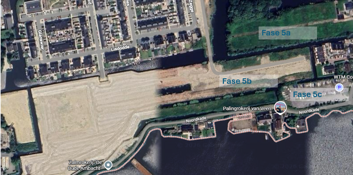 In de komende weken maart 2026 wordt het terrein fase 5a en fase 5b gemaaid inclusief het overhangend groen van de percelen over de watergangen, ter voorbereiding op de voorbelasting werkzaamheden. Aannemer RVR zal de maaiwerkzaamheden uitvoeren. RVR voert zijn materieel aan via de bouwweg fase 4 om op fase 5b te komen en voor toegang tot fase 5a wordt gekeken/afgestemd voor toegang via Noorderhemweg.